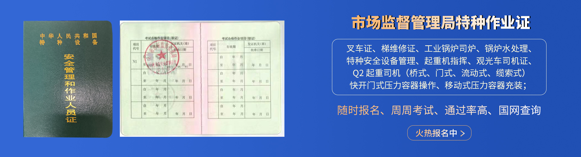叉車(chē)證,電梯維修證,起重司機(jī)-橋式-門(mén)式-流動(dòng)式,起重指揮,壓力容器操作,鍋爐司爐,水處理,特種設(shè)備管理,觀(guān)光車(chē);